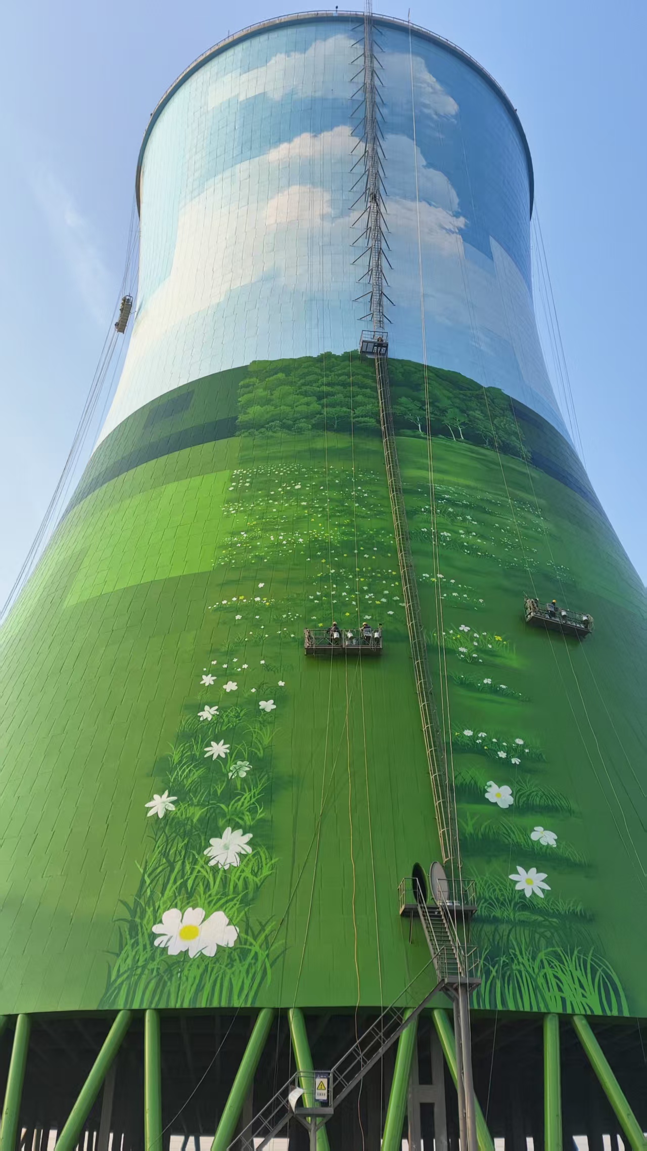 冷卻塔彩繪專家宏順建設(shè)完成高80米的巨型雙曲線塔身化作立體畫布